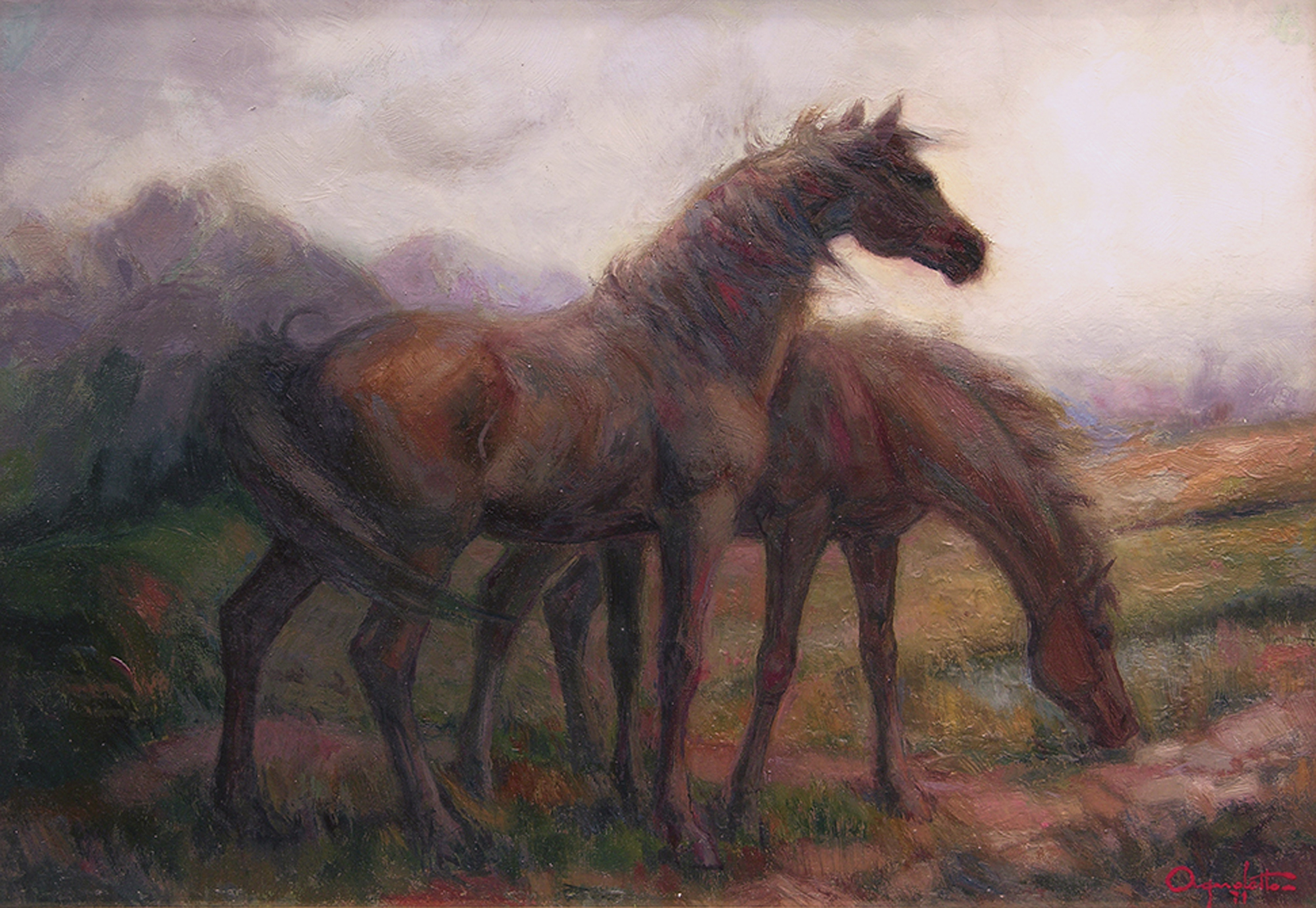 CAVALLI BRADI - cm 50x70 - Olio su tela - 1979